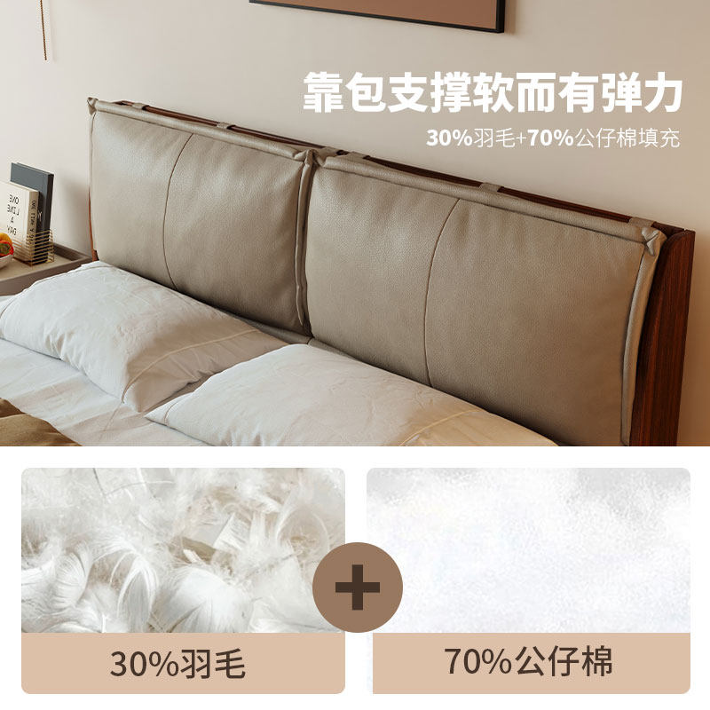 实木床现代简约胡桃木主卧1.5米双人床1.8米主卧轻奢婚房双人床