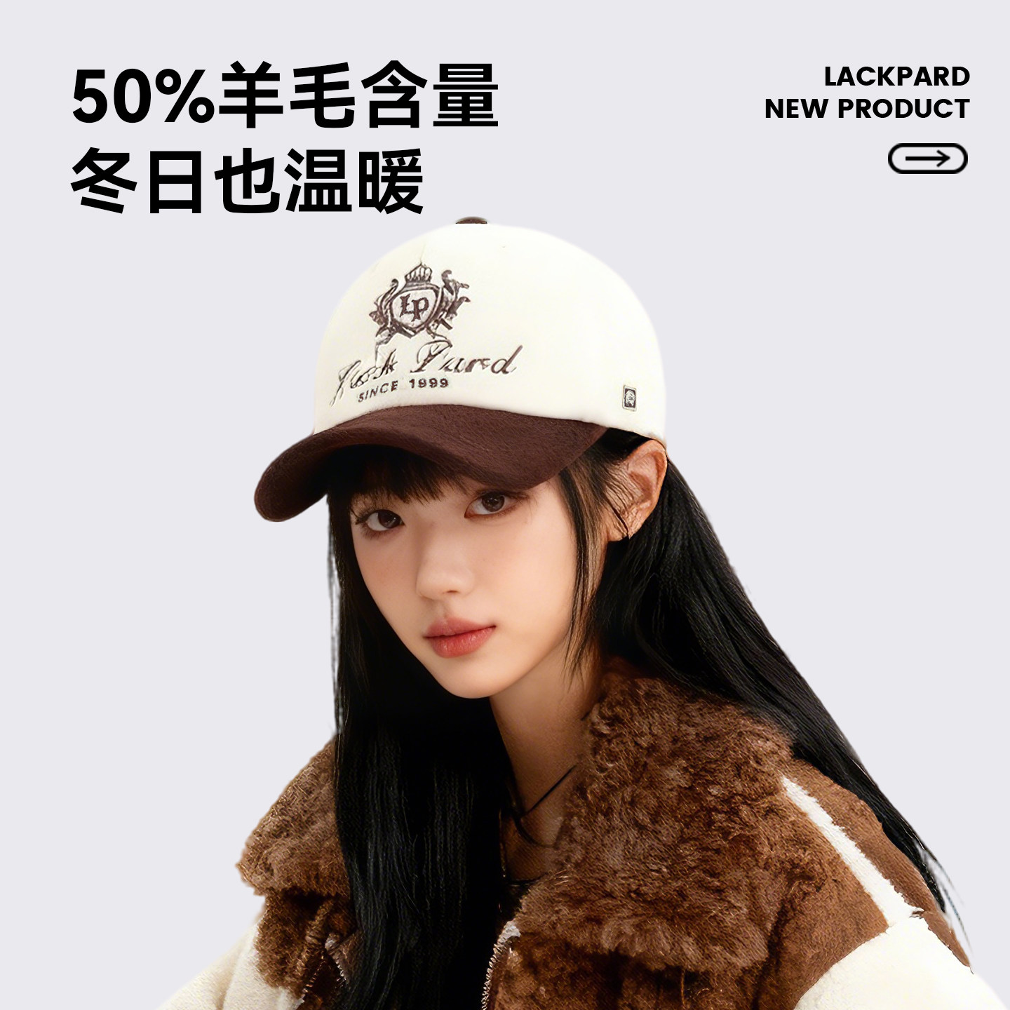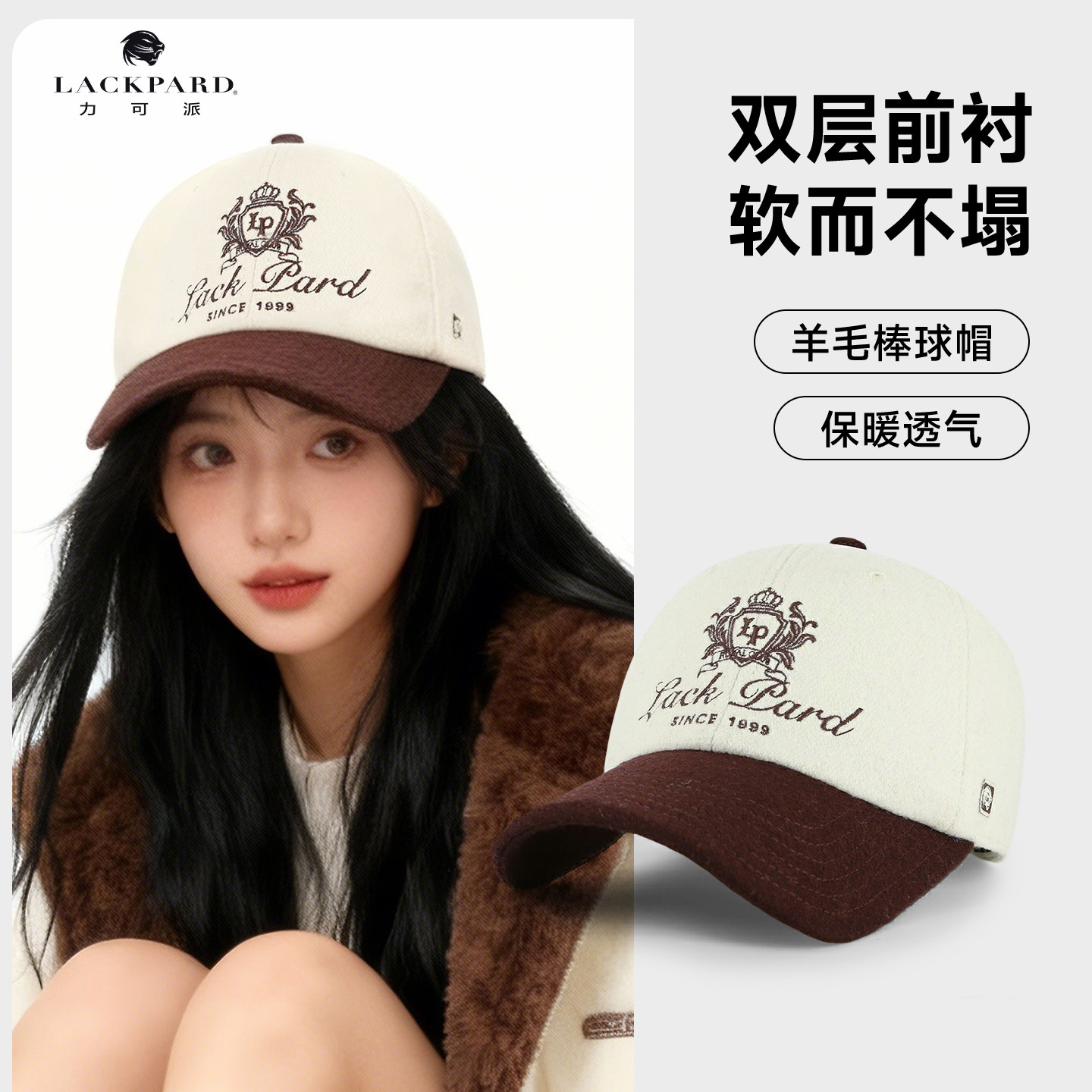 lackpard力可派帽子新款羊毛混纺学院风棒球帽加厚保暖复古棒球帽