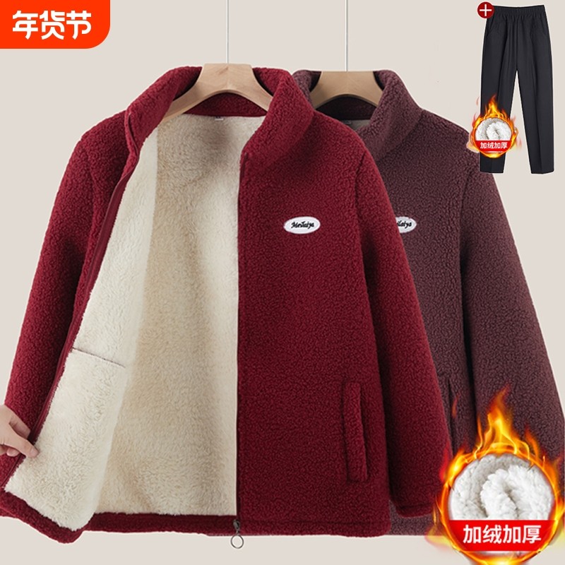 妈妈羊羔毛外套冬季加绒加厚棉服中老年女秋冬时尚奶奶装保暖棉衣