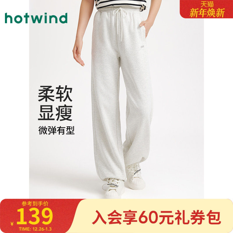 热风女士卫裤2025年秋季新款休闲宽松束脚裤柔软显瘦肌理奶油裤