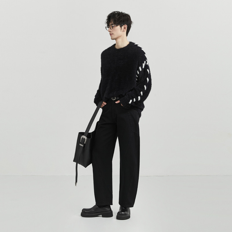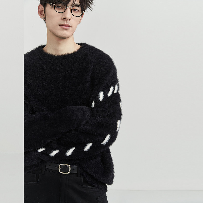 伯爵卓尔outlet奥莱店秋冬季男士高级感仿貂绒毛衣宽松圆领针织衫