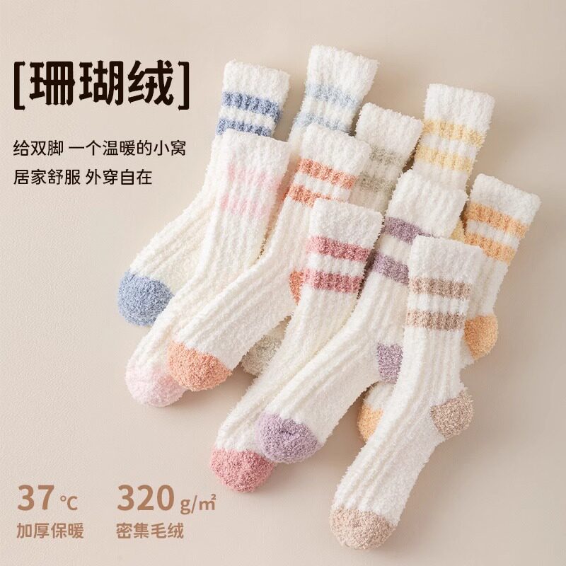 珊瑚绒袜子女冬季加厚加绒保暖地板袜睡眠月子袜秋冬新款睡觉袜子