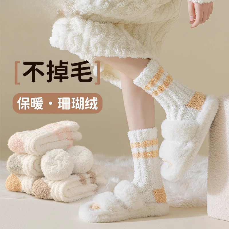 堆堆袜秋冬珊瑚绒加厚袜子女款保暖居家地板袜冬季毛绒睡眠月子袜