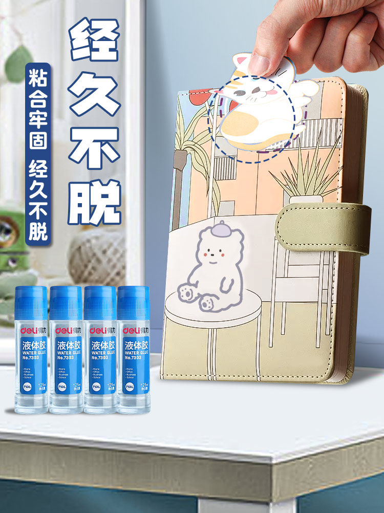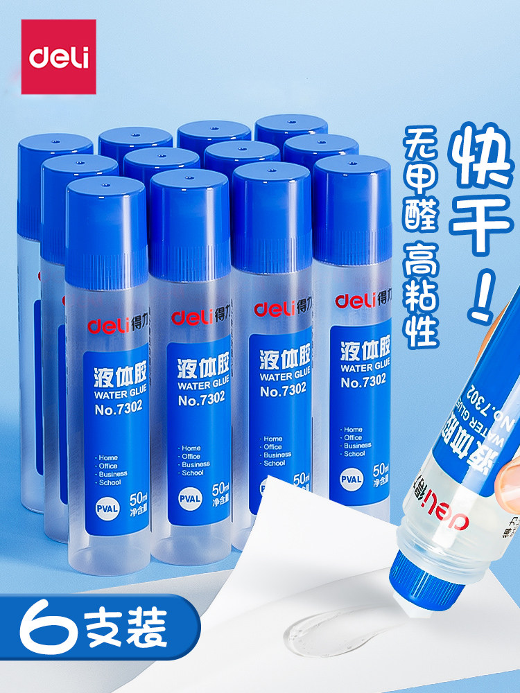得力透明液体胶水办公儿童学生用手工制作diy6支装纸专用饰品材料大桶装可做水晶泥史莱姆文具用品带刷子小瓶