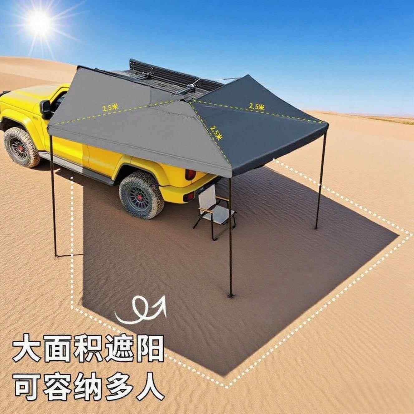 车边帐270度扇形旋转汽车天幕SUV露营铝合金防晒防雨侧边遮阳棚
