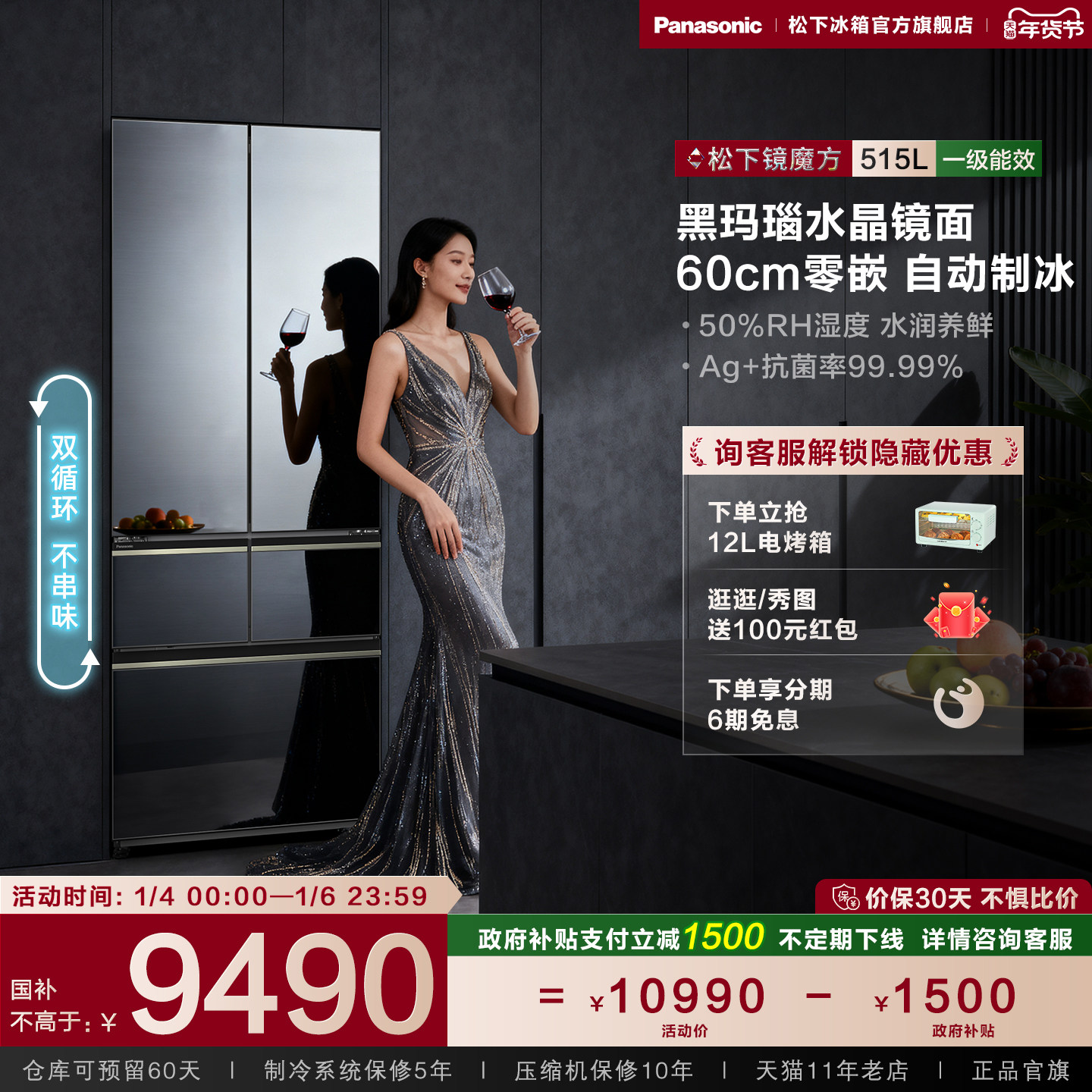 【松下镜魔方】换新补贴一级超薄嵌入多门镜面家用电冰箱 E531AX