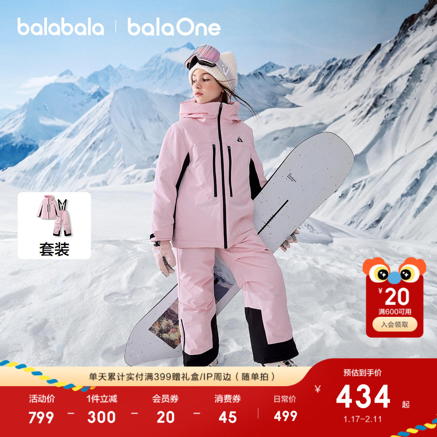 巴拉巴拉童装儿童套装女童男童滑雪服中大童户外两件套2025冬装潮