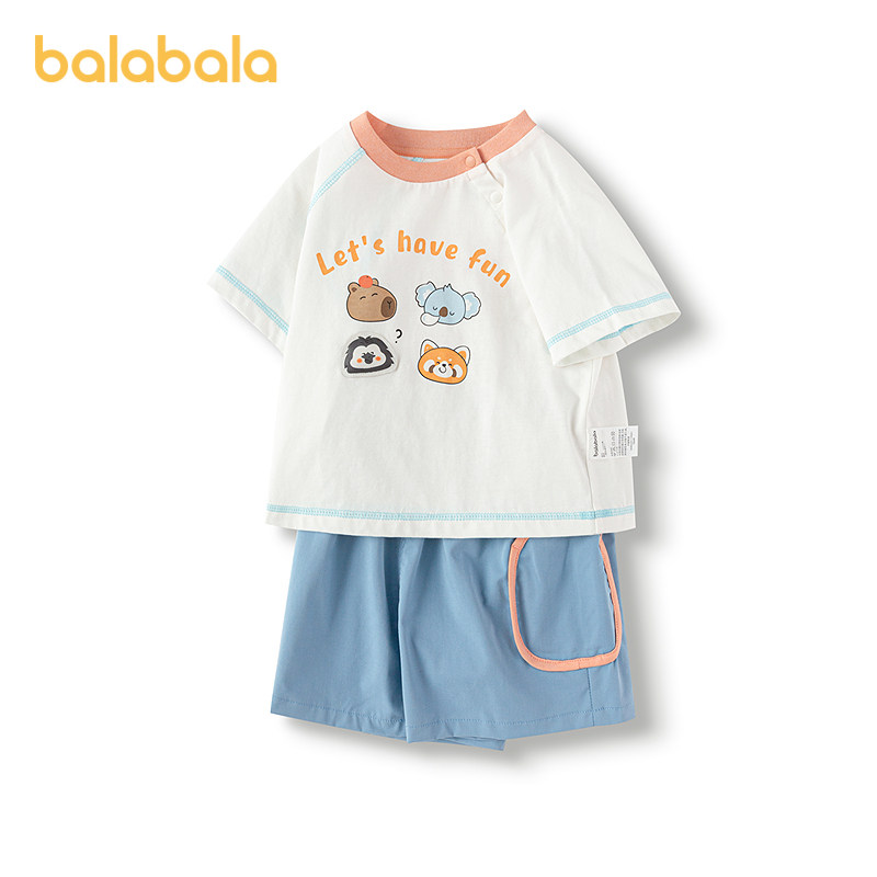 巴拉巴拉宝宝短袖套装男童夏装女童洋气两件套2025新款上衣裤子潮