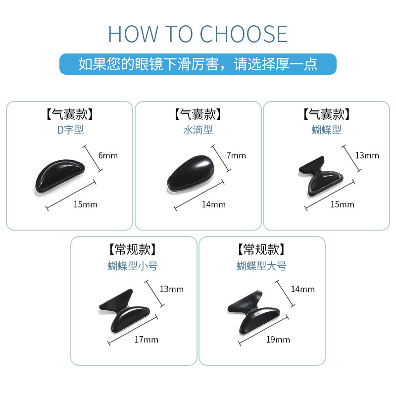 气囊眼镜鼻托贴片 日本流行硅胶防滑鼻垫眼睛框架拖配件鼻梁鼻贴