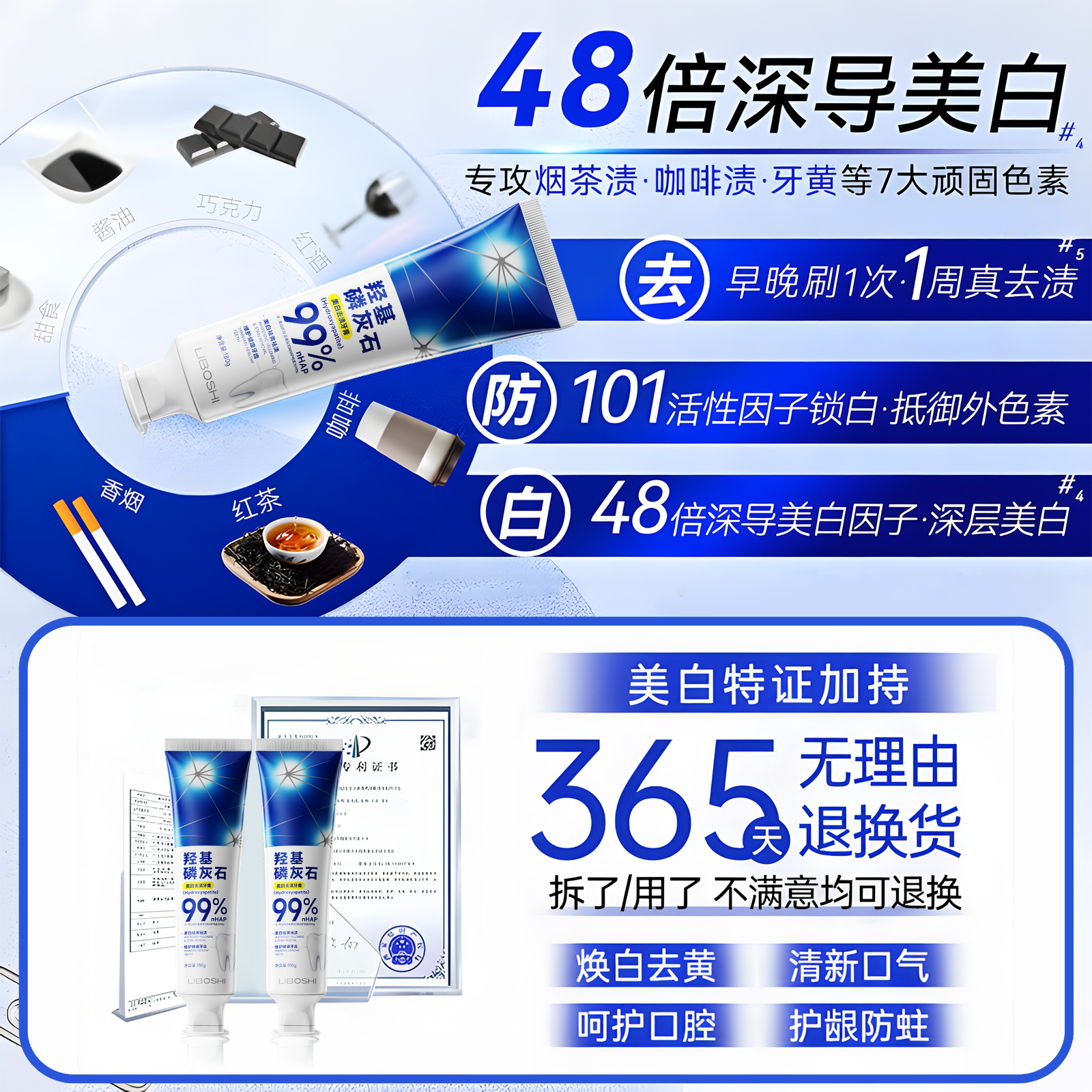 小苏打美白牙膏去黄口臭益生菌酵素成人速效洗白锁白防蛀清新口气
