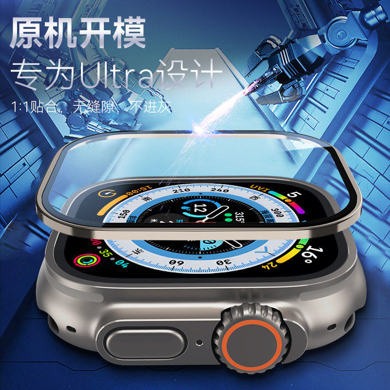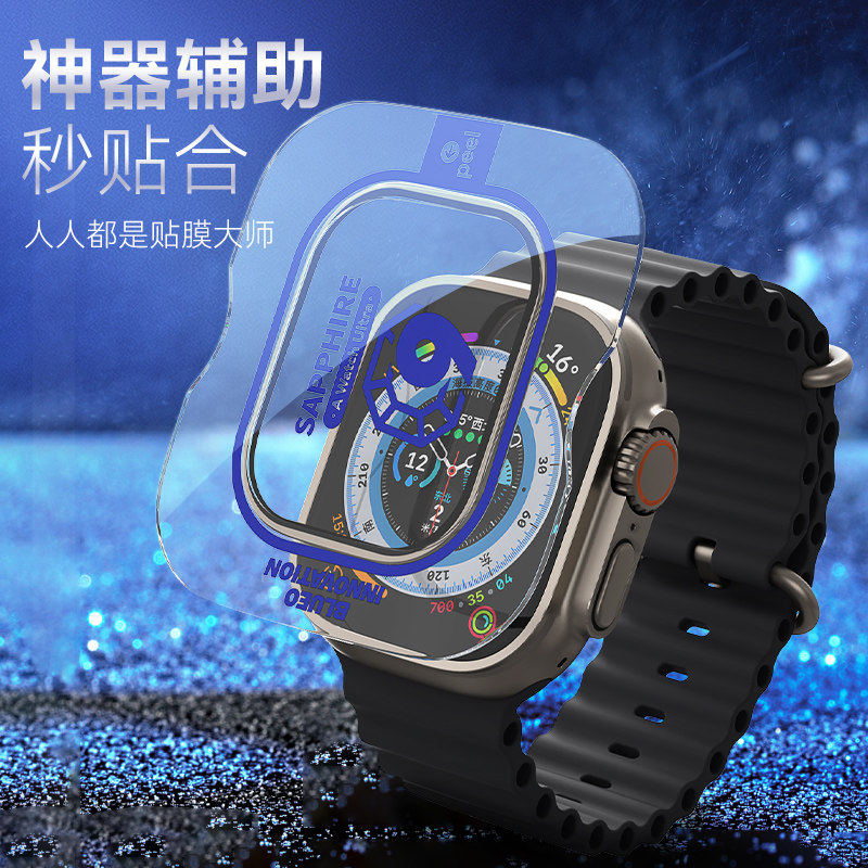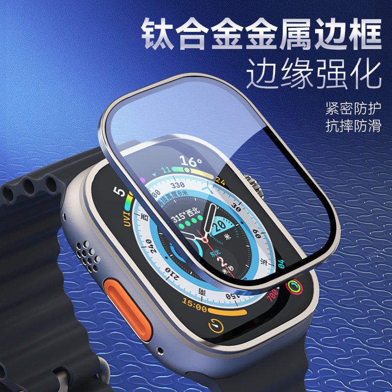 门店同款蓝猩适用苹果watch ultra3手表膜watch ultra2 /1蓝宝石钛金属边框膜壳一体套装49mm防摔耐刮丝滑膜