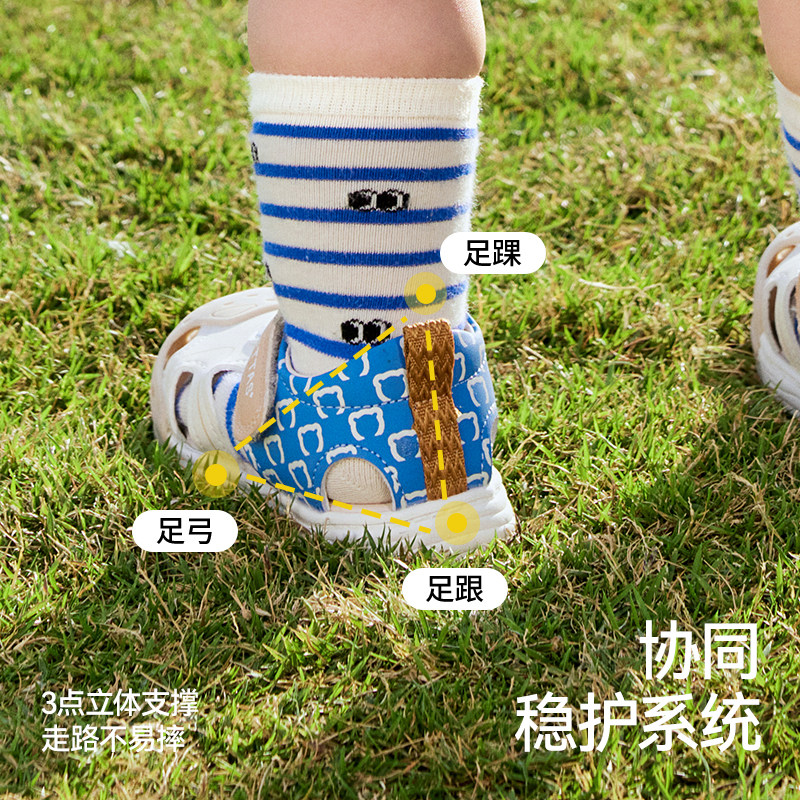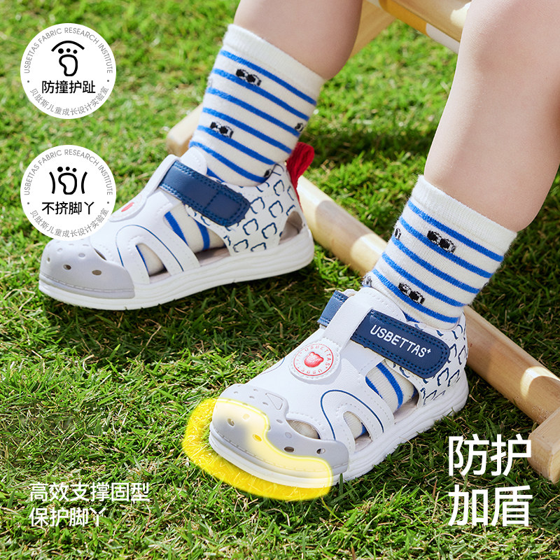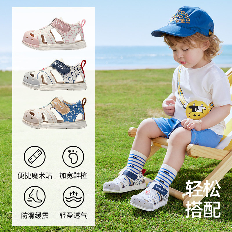 贝肽斯夏季透气凉鞋男女宝宝婴幼儿软底包头防滑学步鞋儿童机能鞋