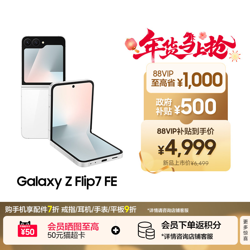 【88VIP至高省1500元】Samsung /三星Galaxy Z Flip7 FE 折叠屏 手机大视野智能外屏 5000万像素 AI手机