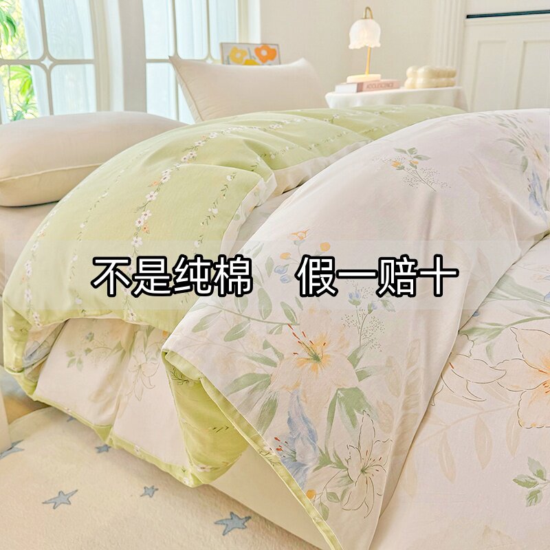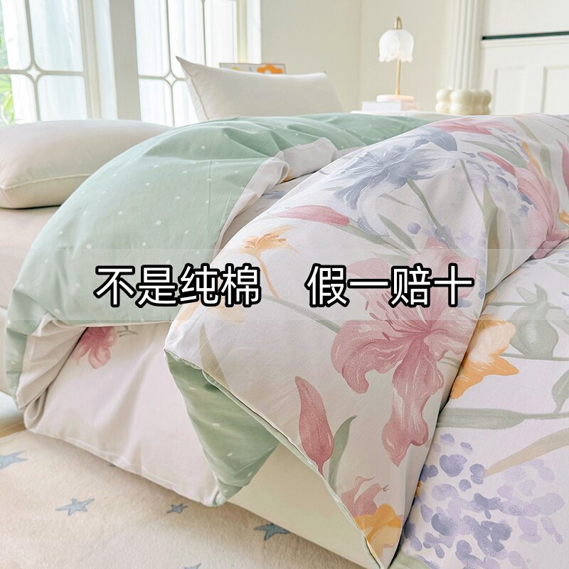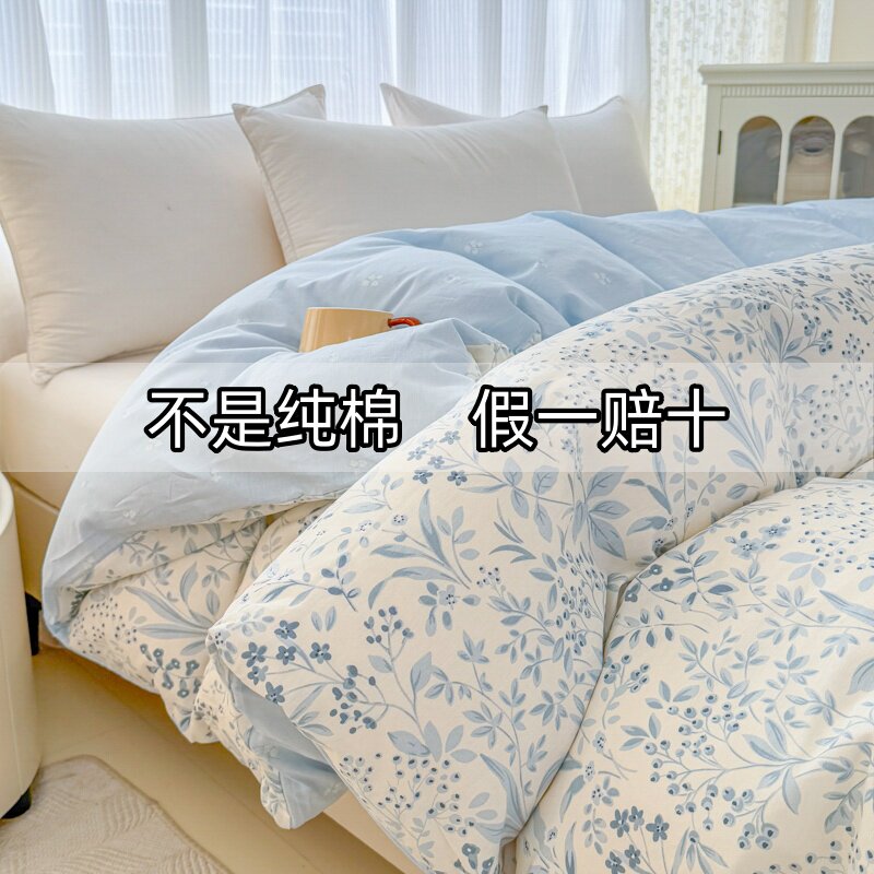 ins风水洗棉被套单件亲肤简约纯色被罩150x200非全棉纯棉冰丝床单