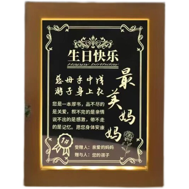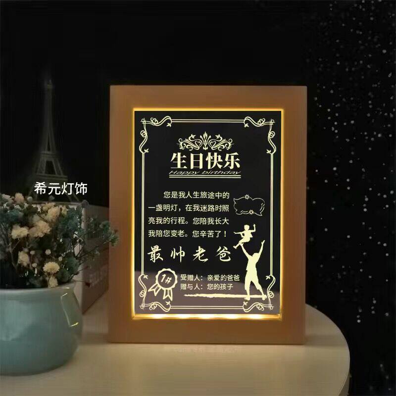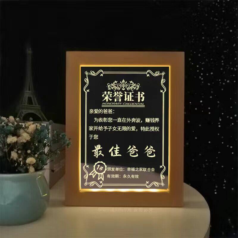 父亲节相框小夜灯定制奖状荣誉证书送爸妈老师闺蜜老公生日礼物