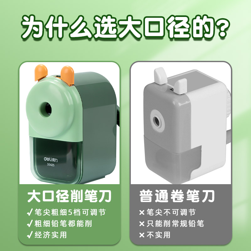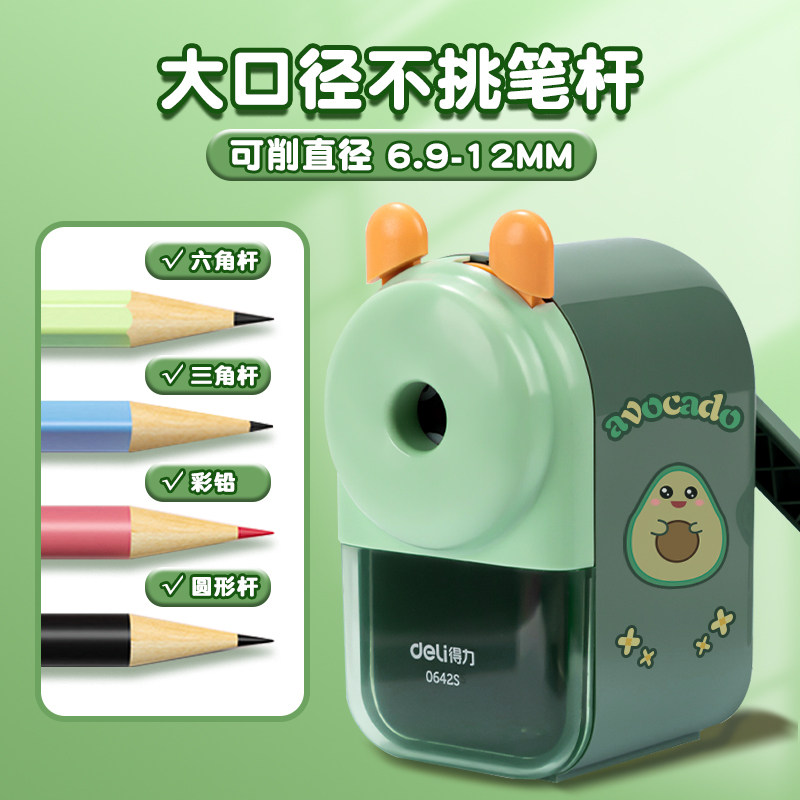 得力大口径卷笔刀削笔机小学生专用手摇粗笔全洞洞铅笔削笔器大三角铅笔速写手动铅笔削笔器刨笔旋笔钻笔刀
