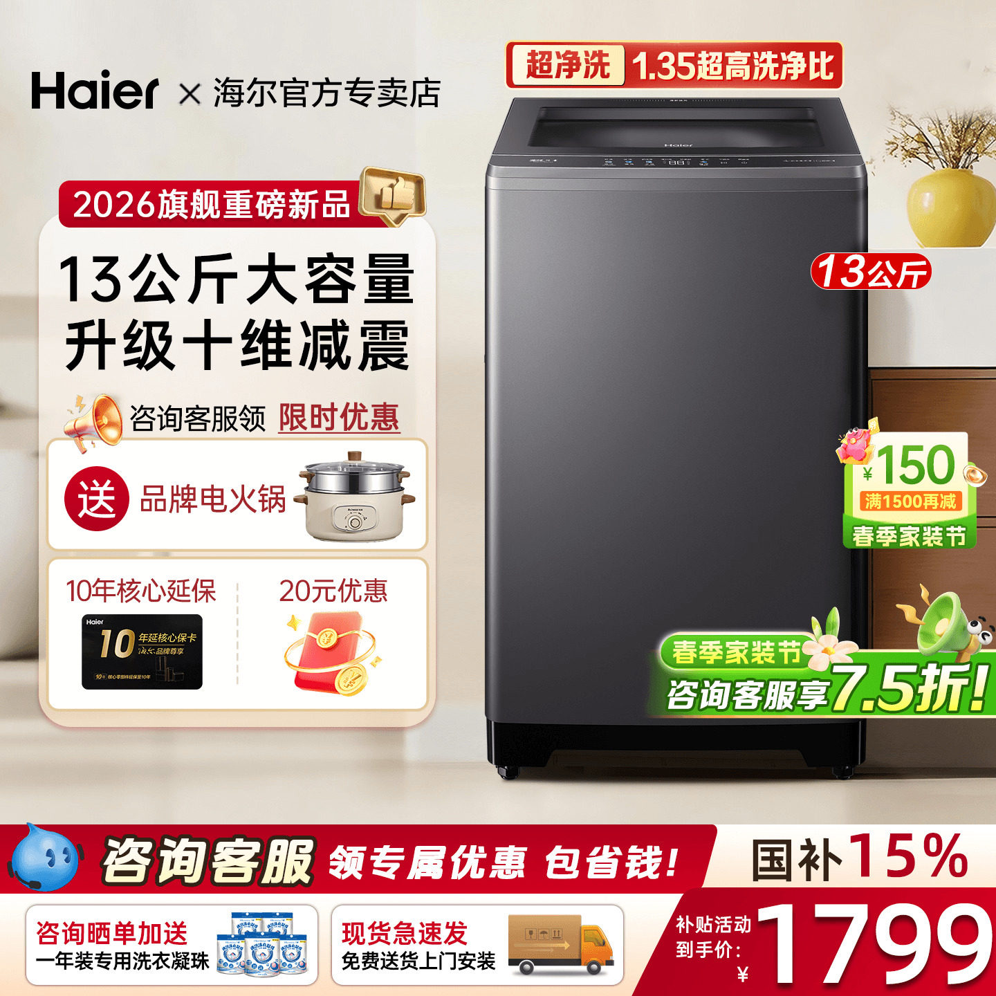 【国补15%】海尔洗衣机全自动家用10/12公斤大容量波轮官方正品