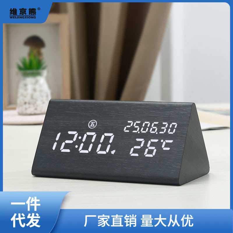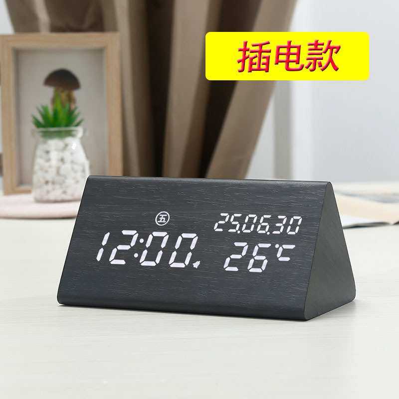 复古木质闹钟 LED静音电子钟创意床头钟客厅座钟摆件夜光时钟链衡
