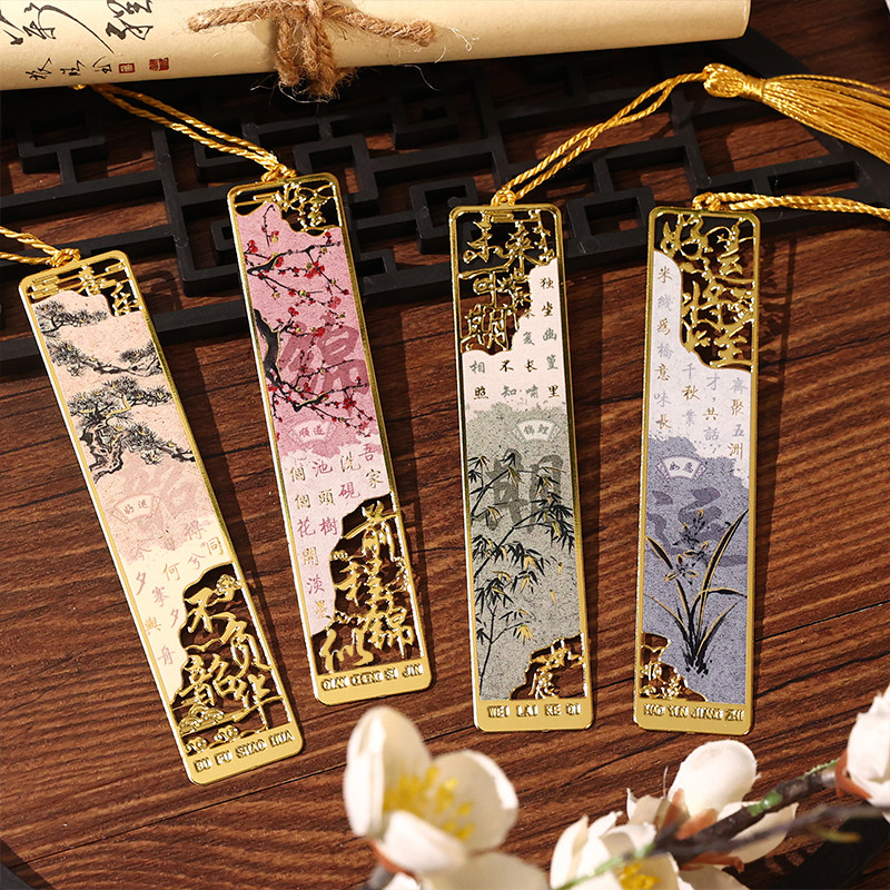 创意精致镂空金属书签高颜值文字书页夹ins风学生阅读笔记标签标记流苏书扣儿童节日礼物文具奖品纪念伴手礼