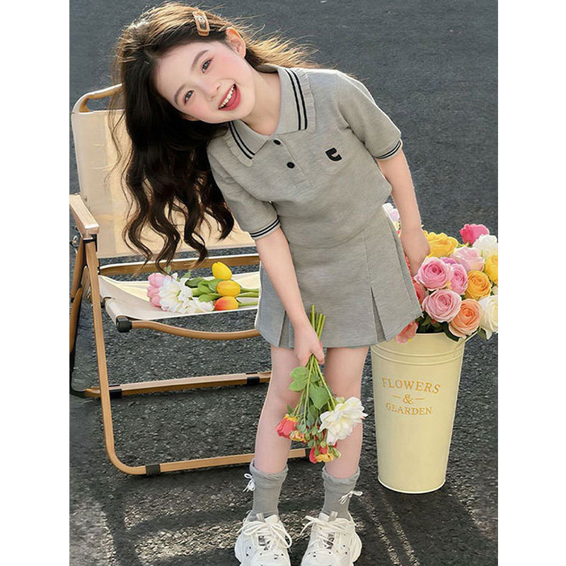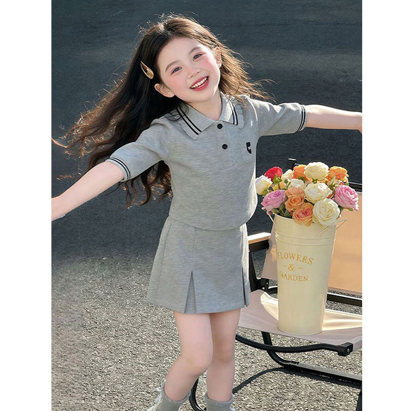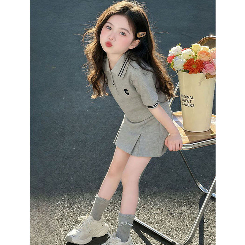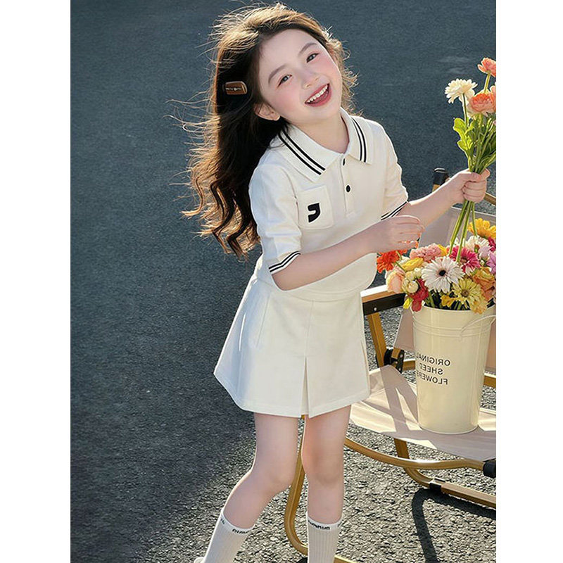 女童夏季套装中大童女孩休闲Polo衫短袖短裙裤两件套网红运动夏装