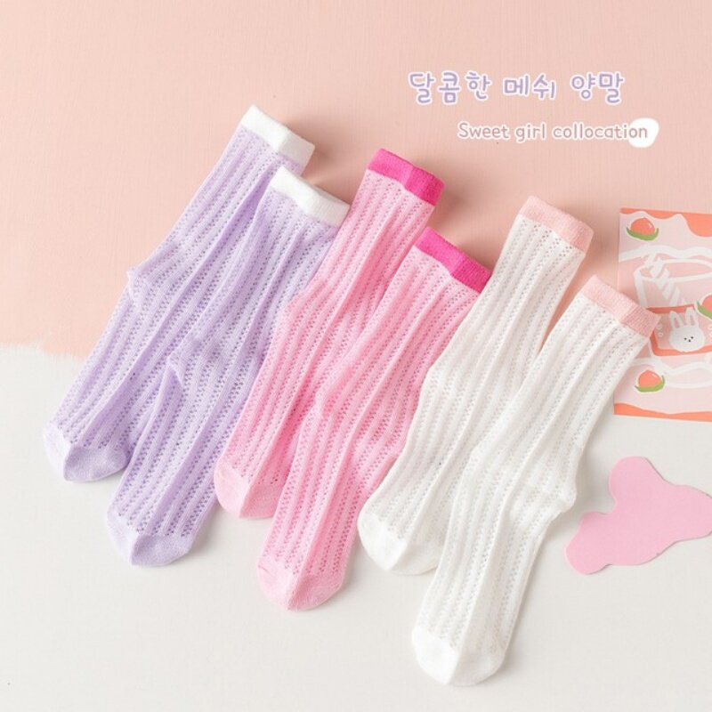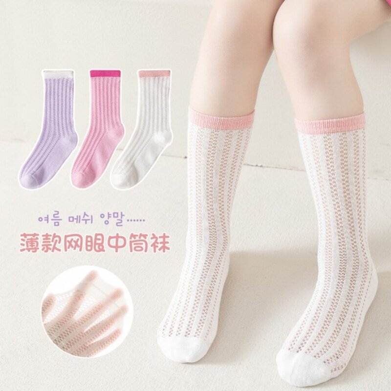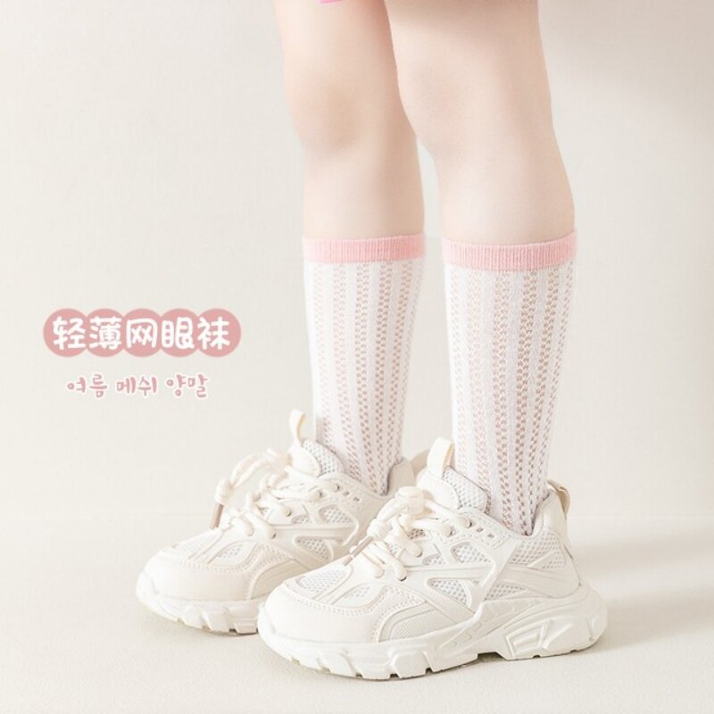 儿童袜子夏季薄款女童中筒袜网眼透气棉袜宝宝堆堆袜白色学生袜