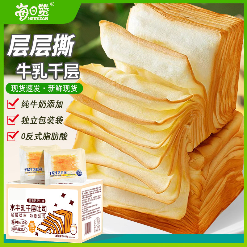 每日赞黄油千层吐司手撕面包水牛乳营养早餐点心24包整箱营养充饥