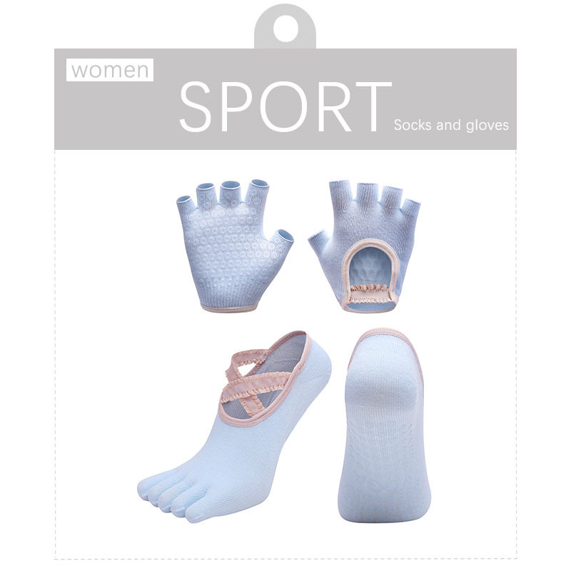 【T1/W1+B3】女士袜子手套组合五指蕾丝防滑健身运动普拉提瑜伽袜
