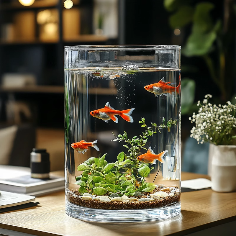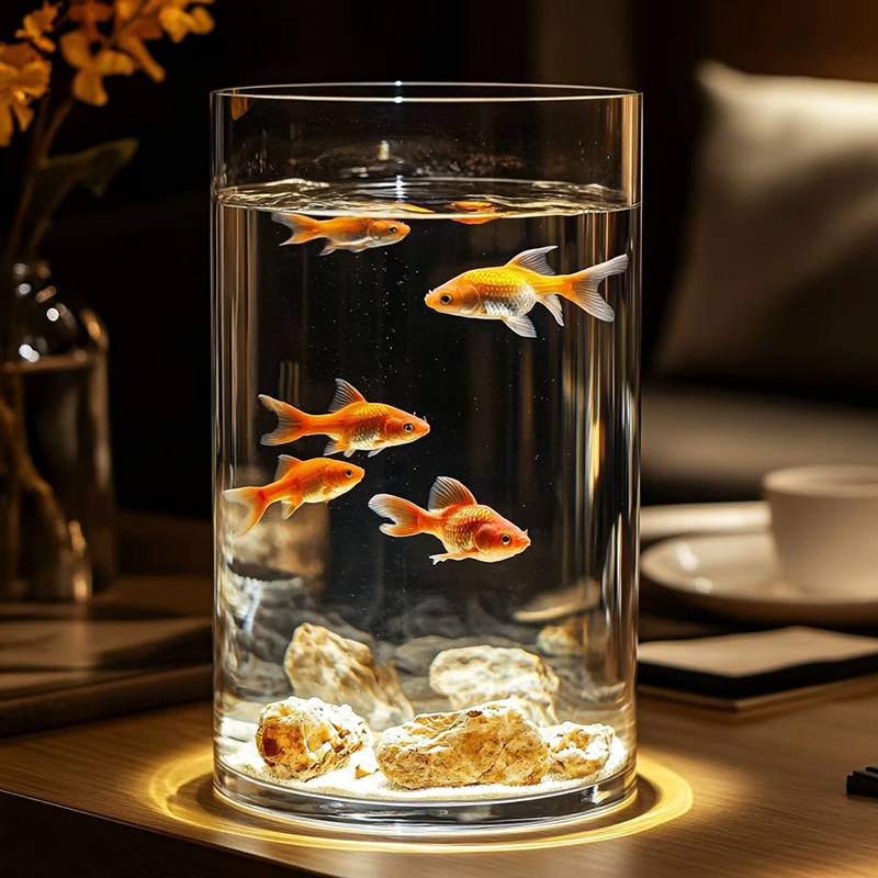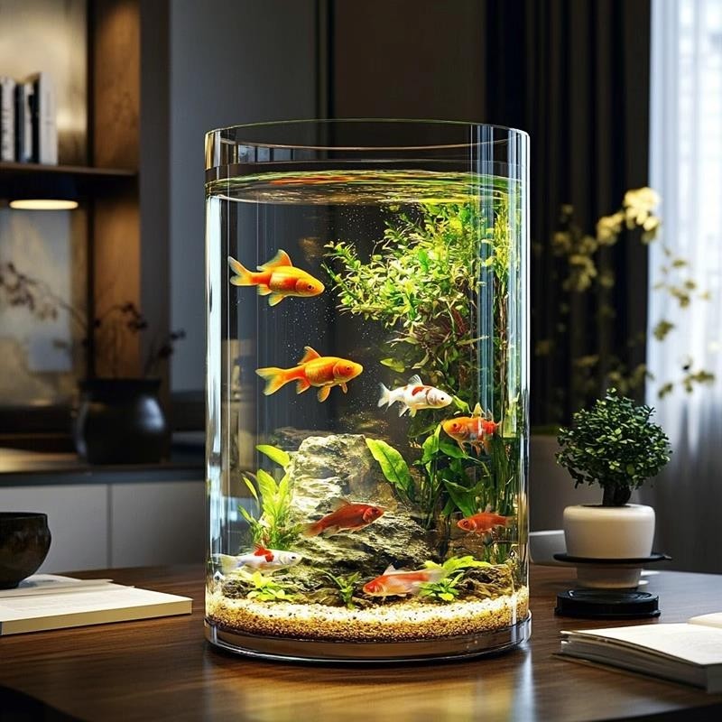 亚克力鱼缸透明玻璃金鱼缸圆形圆柱形客厅桌面小型防摔塑料超白