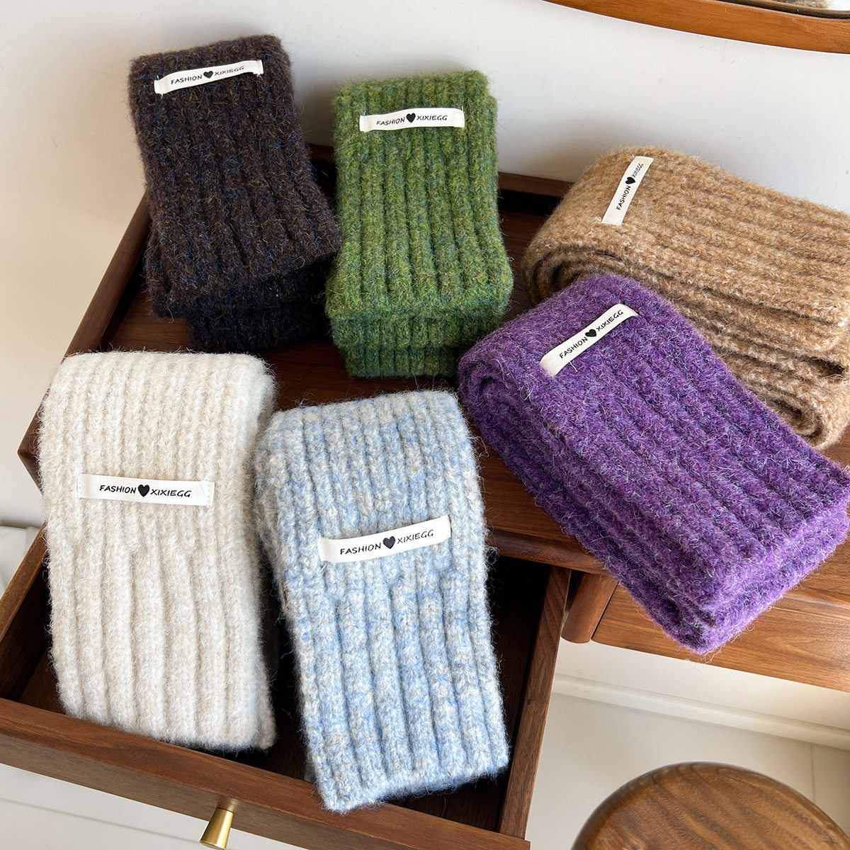 小平板长围巾韩版针织学生百搭保暖围脖加厚黑色紫色绿色驼色米色