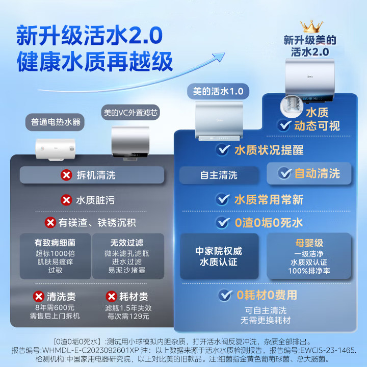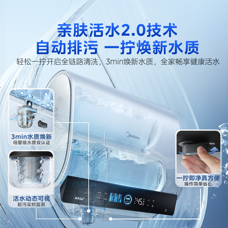 美的活水2.0电热水器UD10MAX双胆扁桶洗澡家用一级家电UD10Ultra