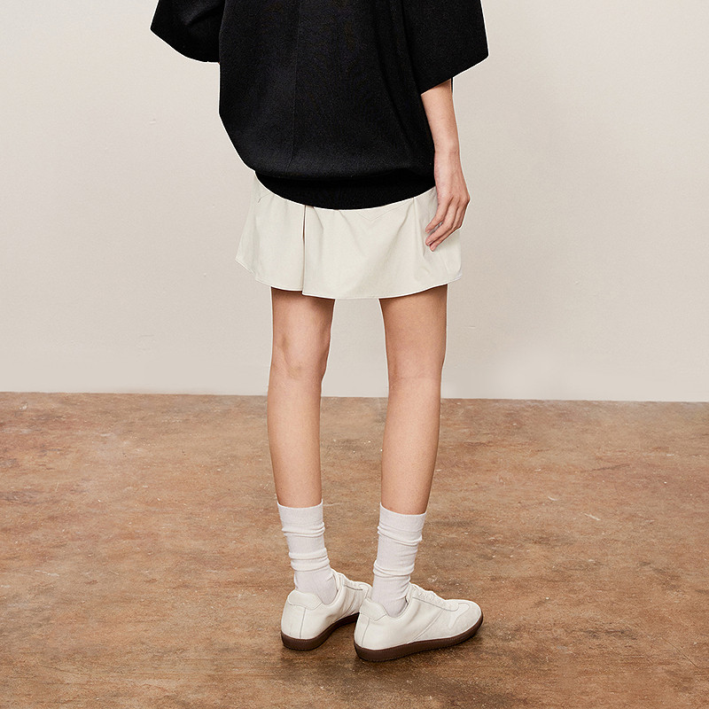 LESS松紧五分裤子女挺括运动简约百搭休闲宽松直筒短裤2O7E10960
