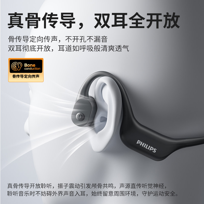 飞利浦TAA6609骨传导耳机跑步手机蓝牙5.3防水防汗挂耳自带内存