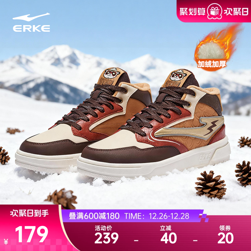 电池熊猫鸿星尔克板鞋冬季男鞋保暖鞋子加绒加厚棉鞋高帮运动鞋