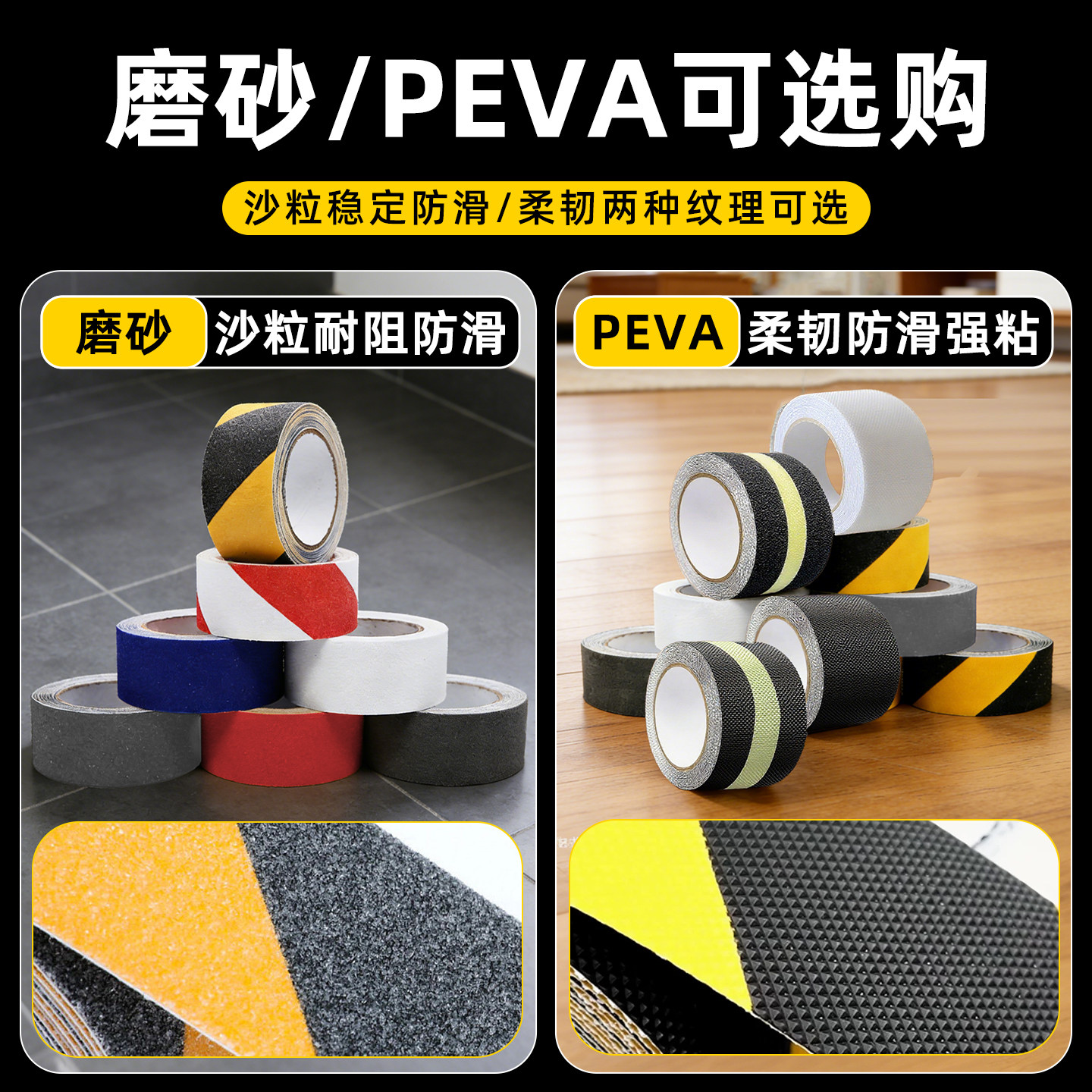 磨砂防滑胶带楼梯防滑贴耐磨加厚地贴片台阶警示胶条自粘PVC橡胶贴条地板浴室瓷砖防打滑防水地面自粘胶布