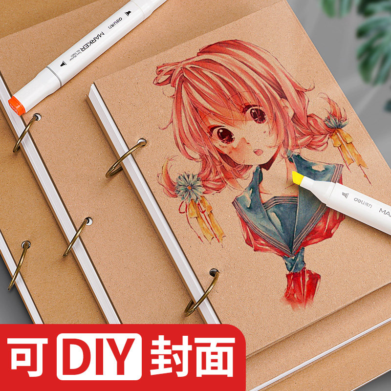 元浩活页马克笔专用绘画本A4儿童画画本空白A5手绘涂色美术小学生幼儿园8k动漫8开加厚不透墨水彩涂鸦图画本