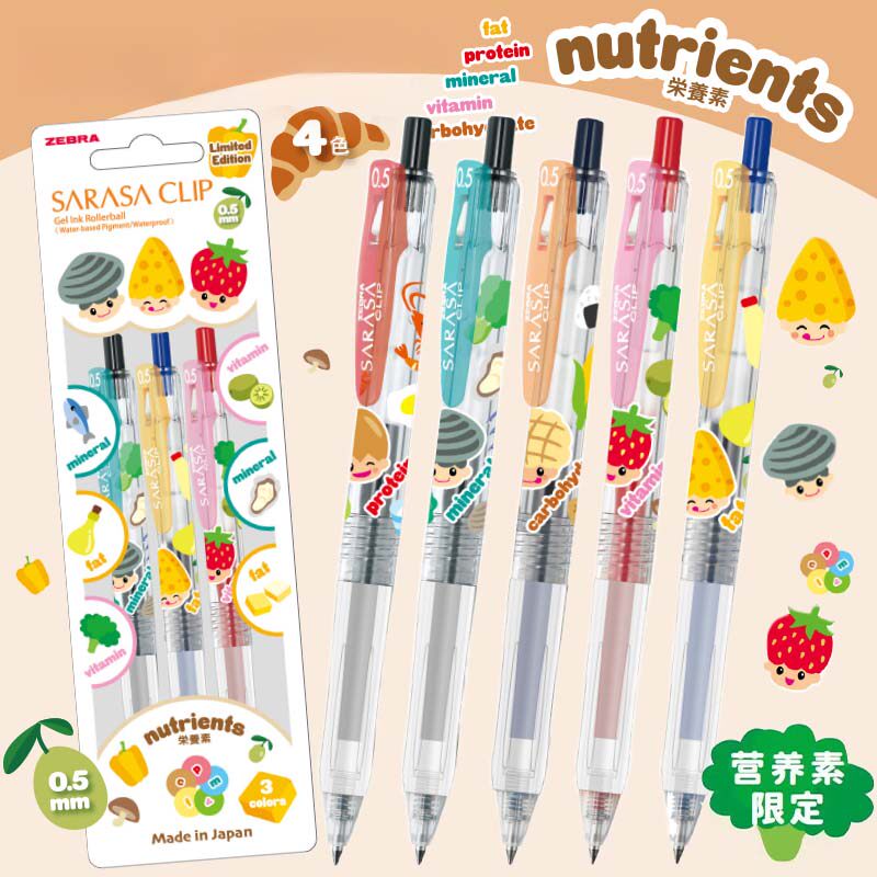 【自营】ZEBRA斑马限定笔营养素限定款按动式彩色水笔手账笔大容量0.5mm学生刷题签字笔具