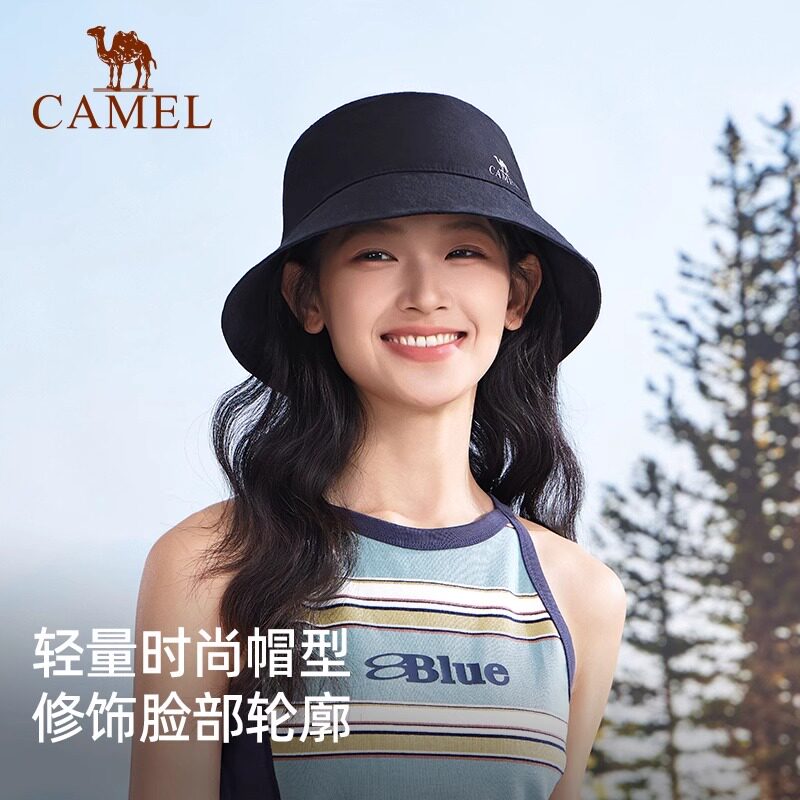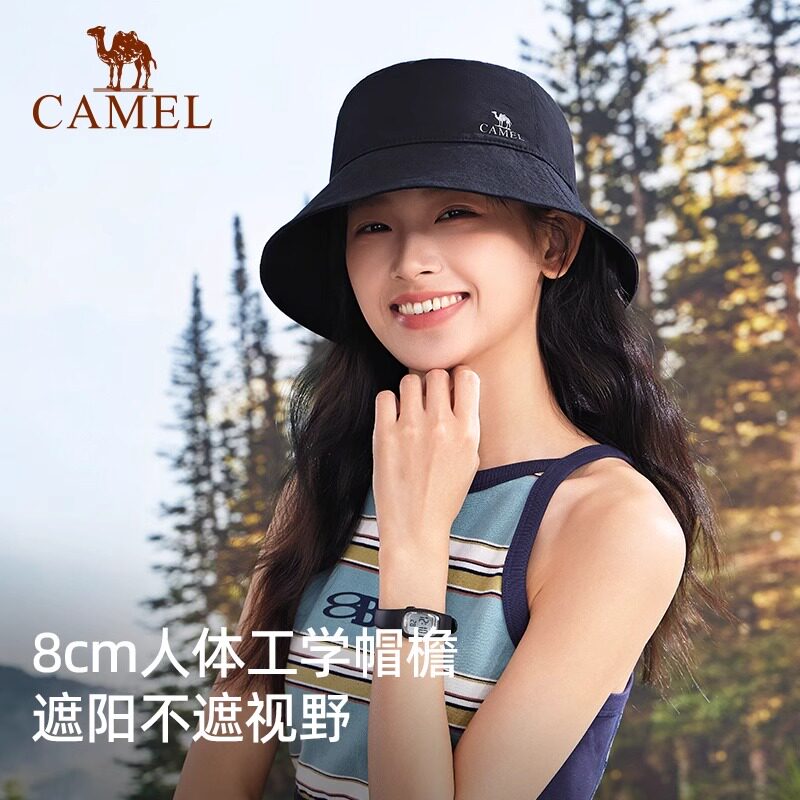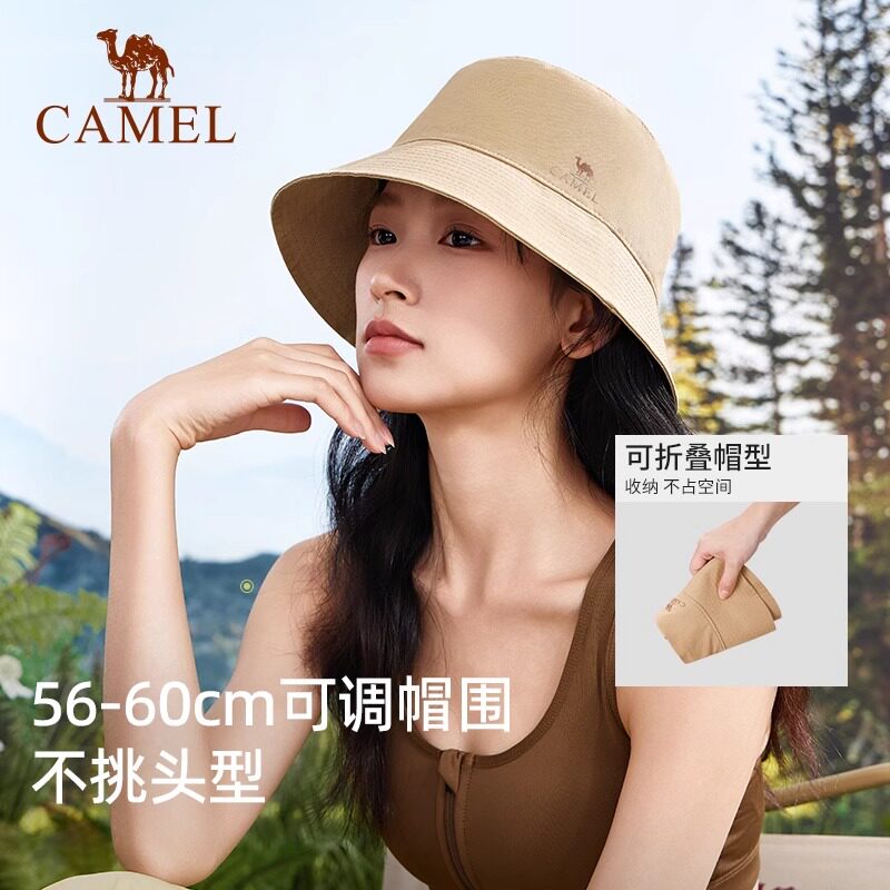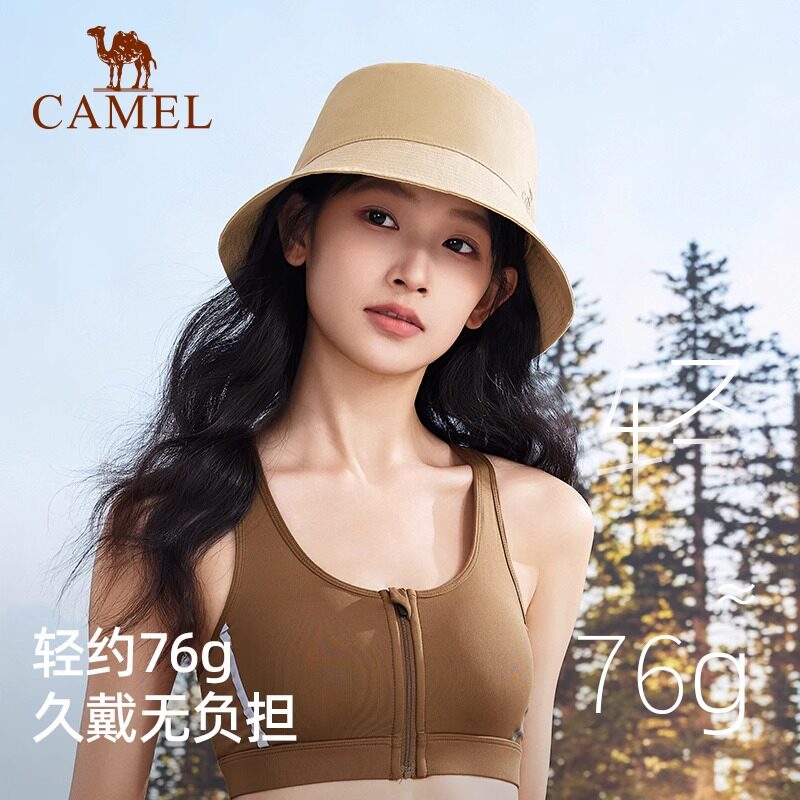 骆驼户外日系渔夫帽女春秋大帽檐双面遮阳帽UPF50+防紫外线钓鱼帽