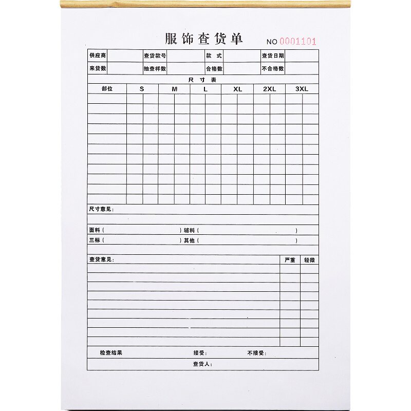服饰查货单二三联服装质检成衣查货报告单制衣厂QC检验记录表定制
