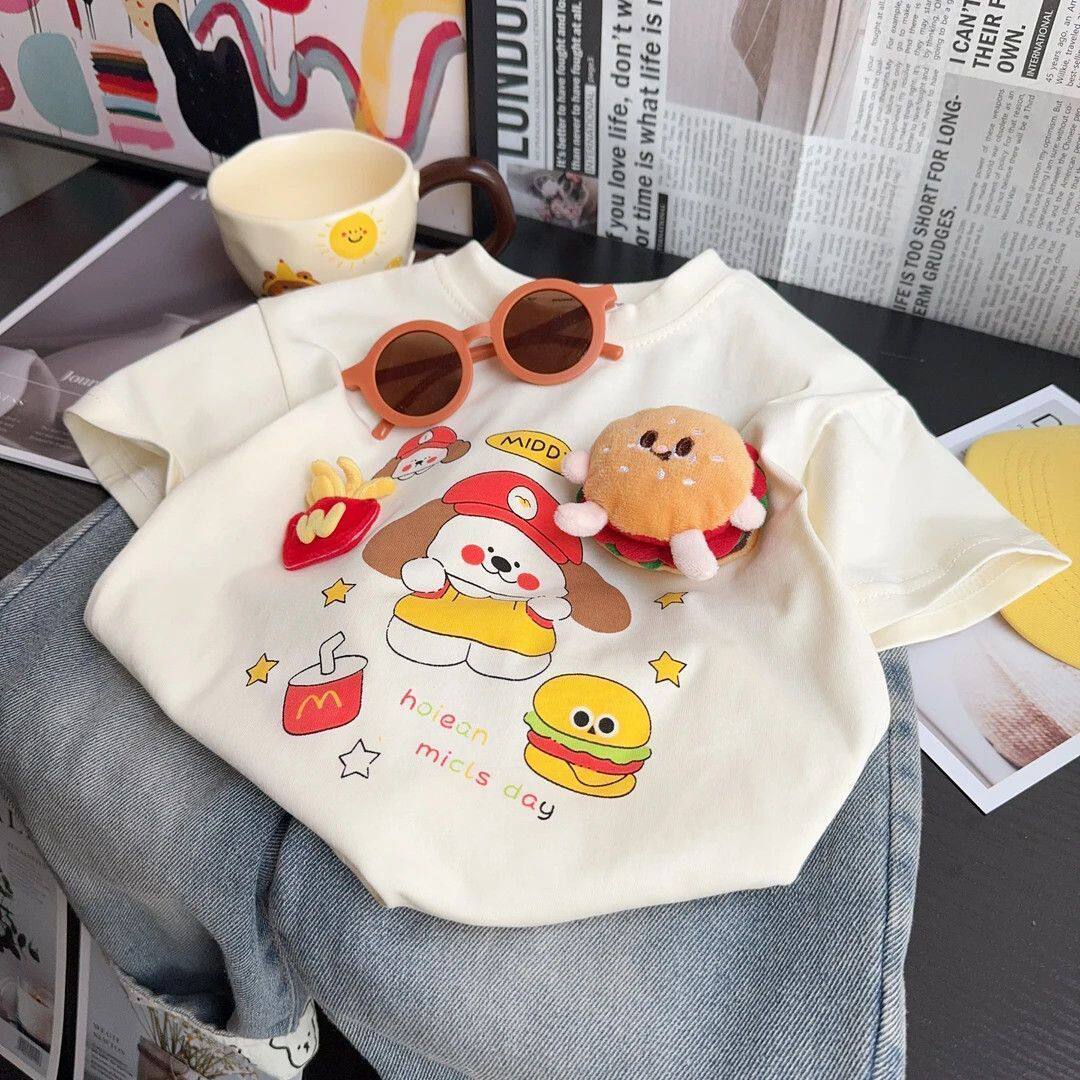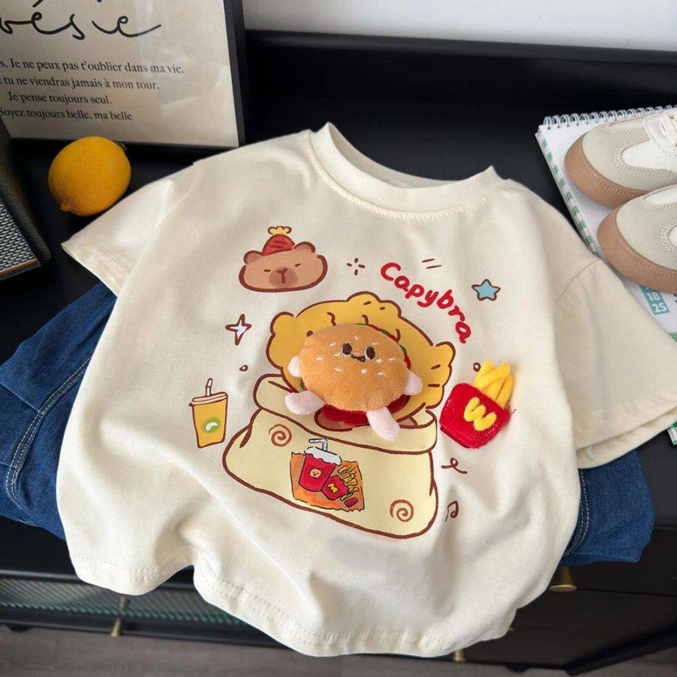 立体玩偶印花T恤纯棉男女童装夏季新款宽松卡通洋气公仔儿童上衣