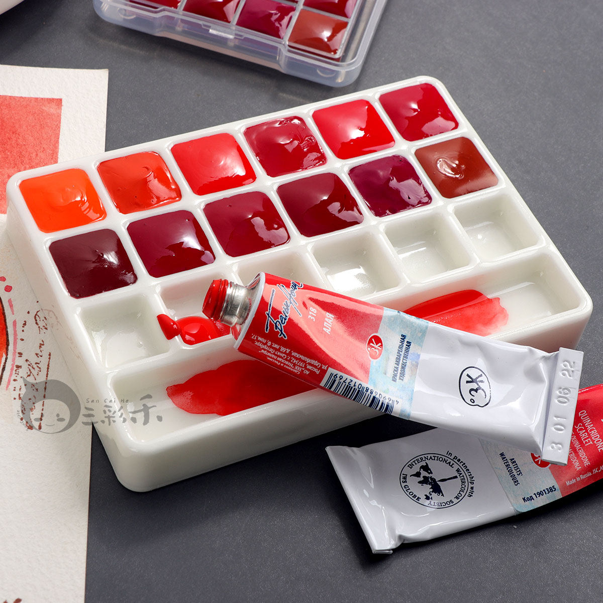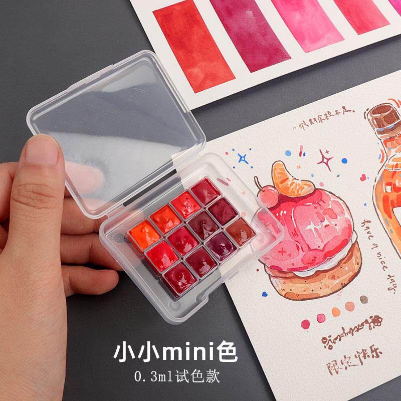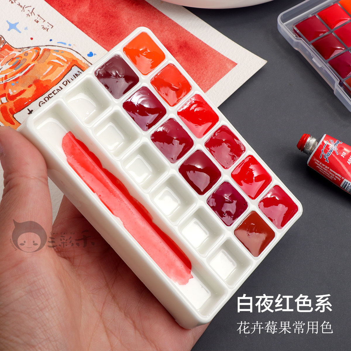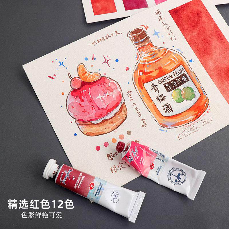 白夜大师级水彩颜料热门红色系精选12色 花卉美食水果色歌剧粉红