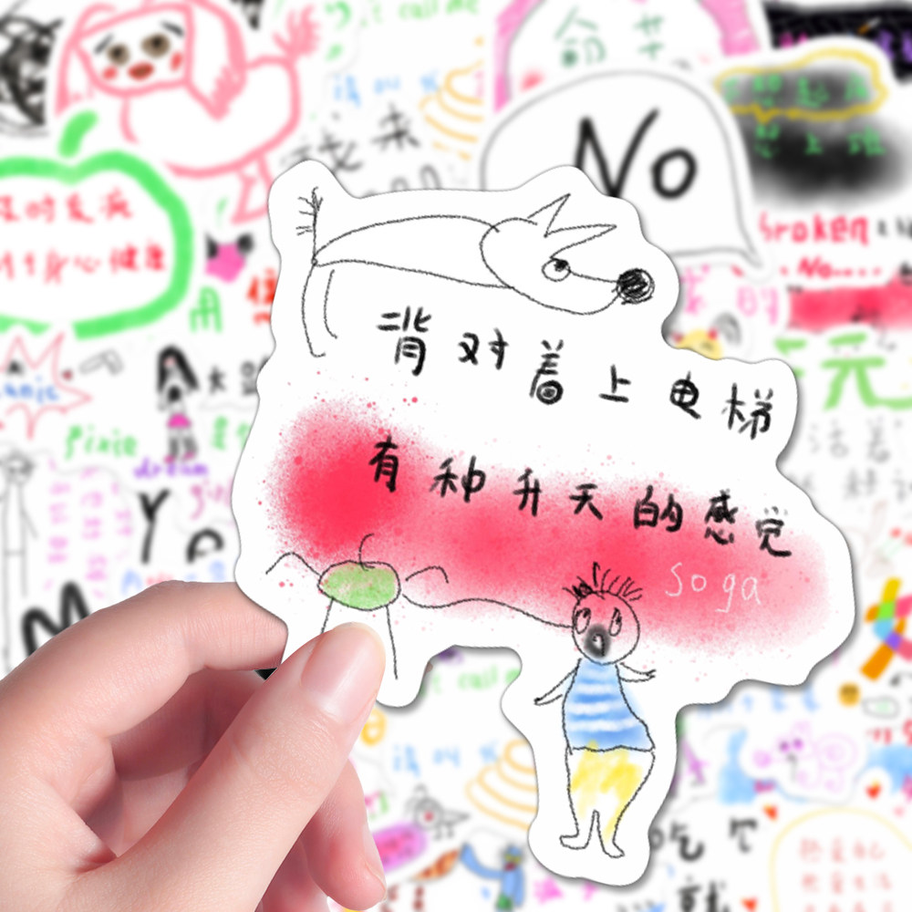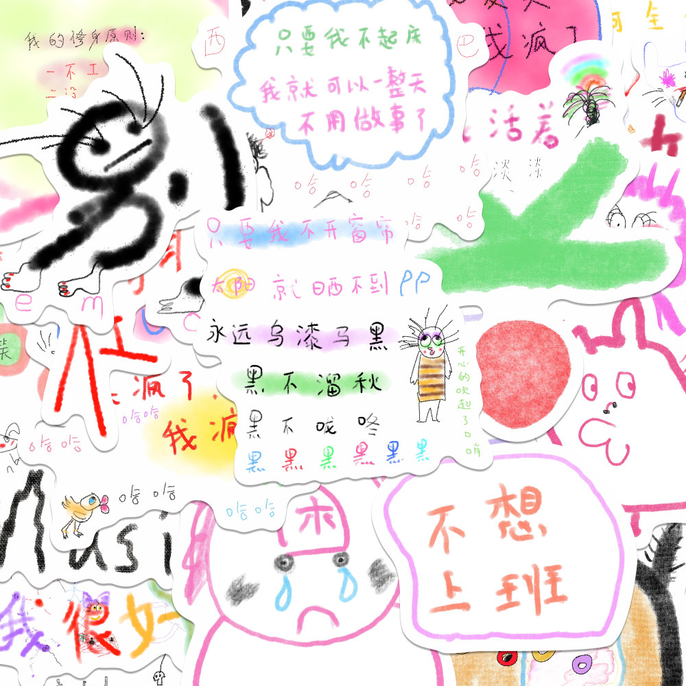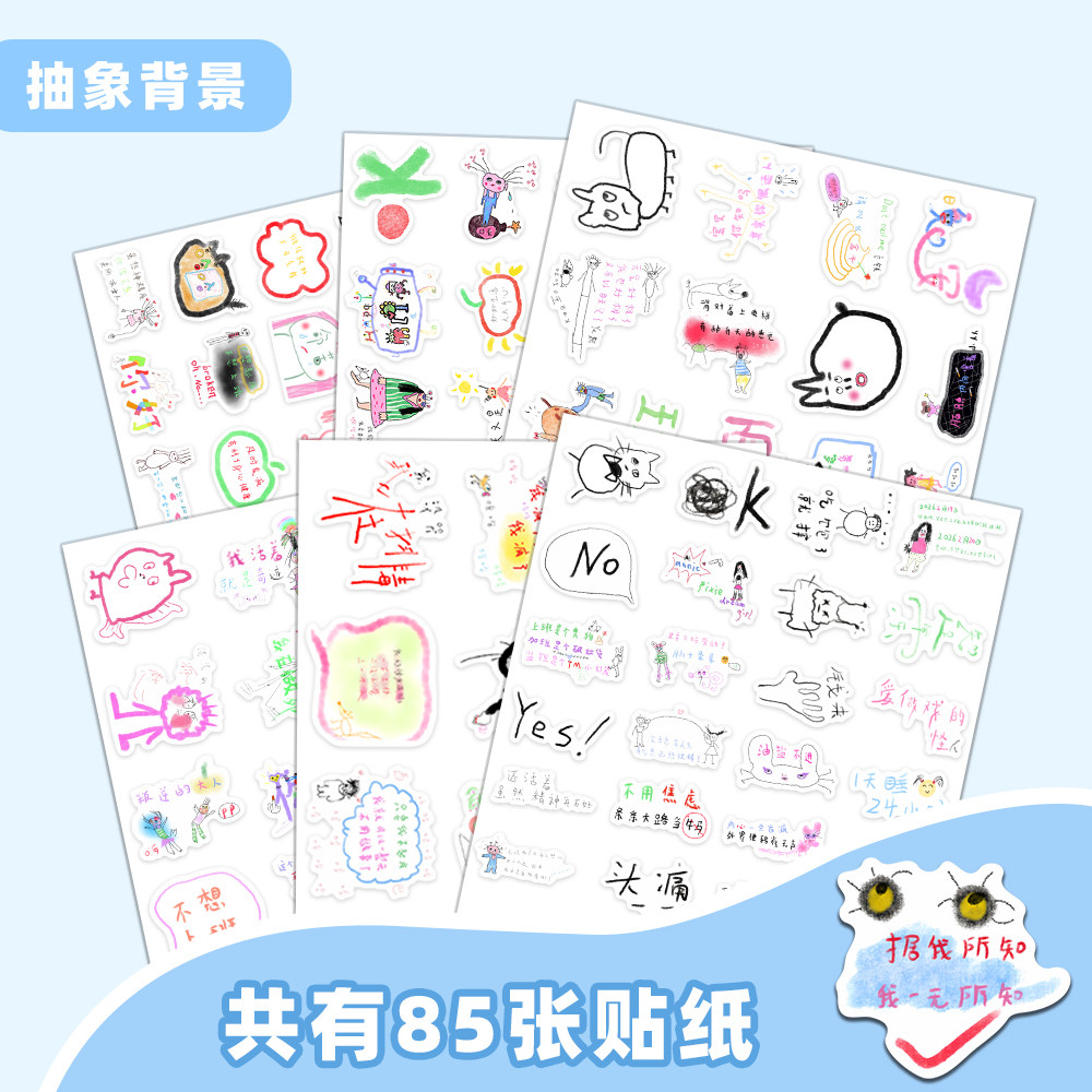 255张抽象背景贴纸热门抽象搞笑热梗简笔画治愈系语录彩绘手帐贴