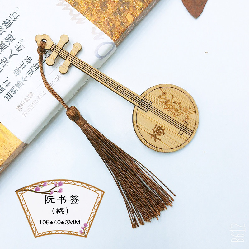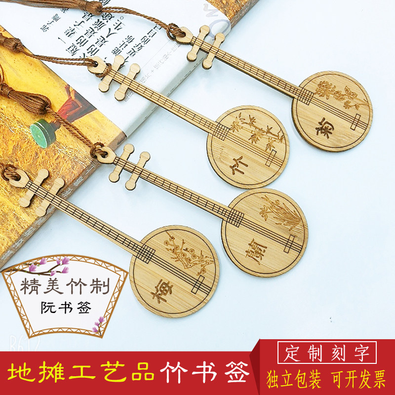 竹木中国风阮琵琶乐器书签梅兰竹菊景区旅游地摊纪念工艺品定制