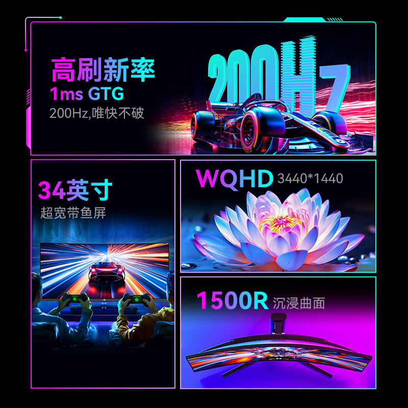 34英寸21:9超宽曲面 4K165Hz HDR400