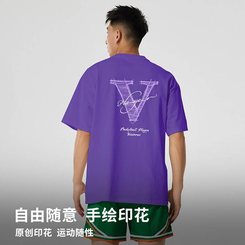 维动手稿短袖男篮球运动针织美式圆领T恤衫棉宽松休闲半袖夏季V