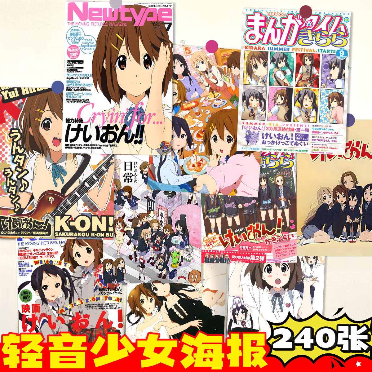 240张轻音少女海报墙贴宿舍背景墙大号素材纸diy少女心动漫海报