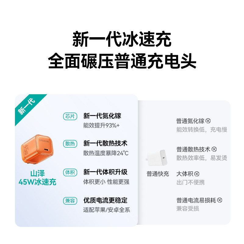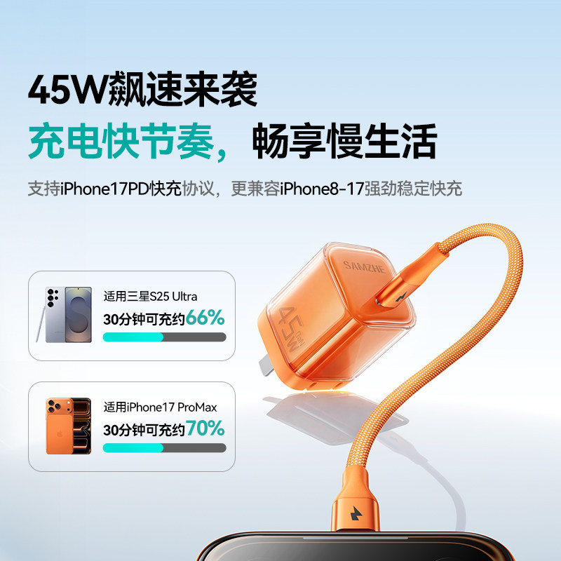 山泽45W冰速充适用苹果15充电器线充电头40W氮化镓iPhone17promax快充手机16数据线13插头Type-C