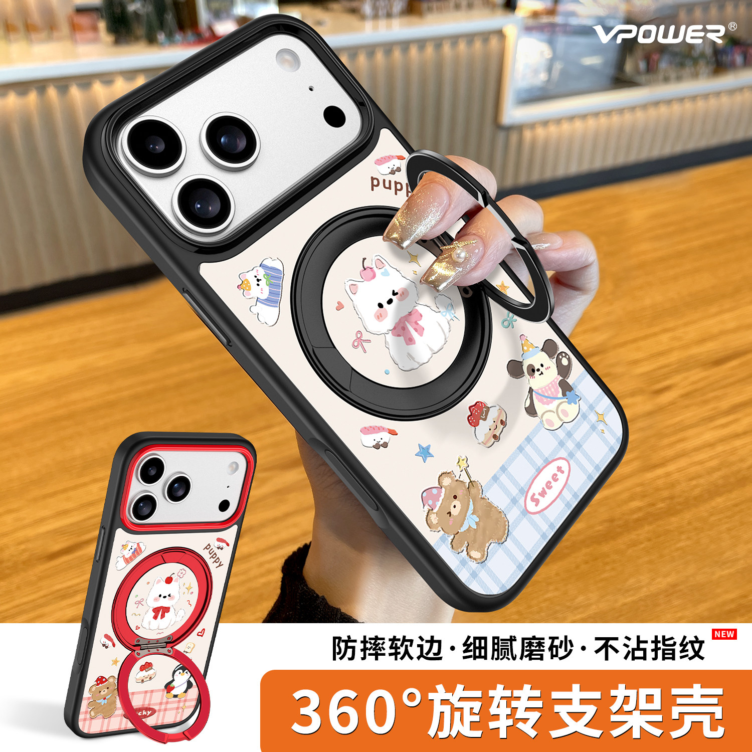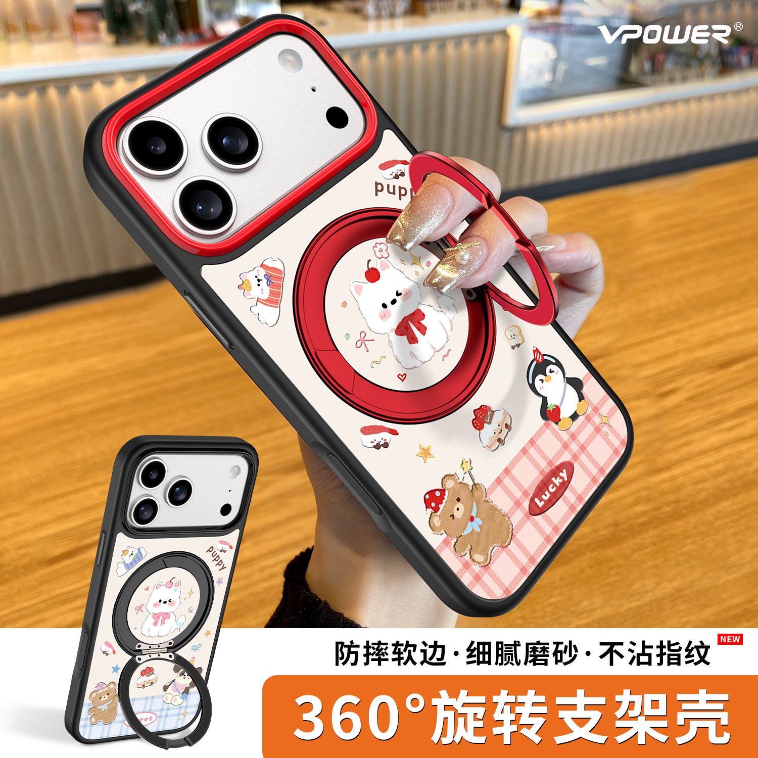 涂鸦公仔适用苹果17promax手机壳新款旋转支架磨砂iphone16por全包防摔15pm超薄磁吸可爱保护套ip卡通外壳女