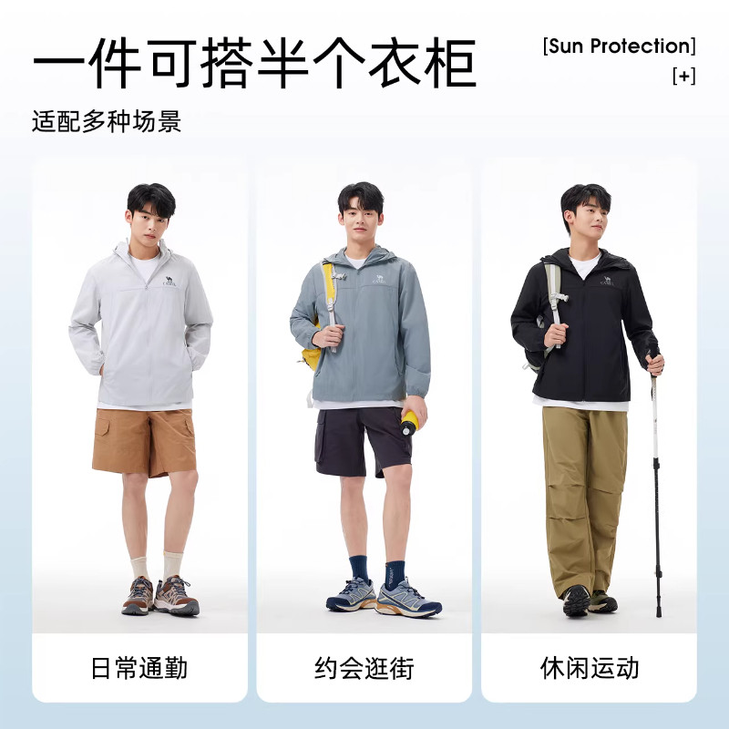 骆驼宽松防晒外套男款2026春夏凉感钓鱼服户外轻薄透气皮肤衣女