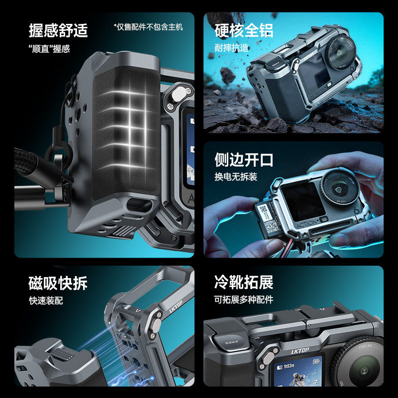LKTOP适配大疆Action6街拍套装兔笼手柄快门握把超轻action6金属兔笼边框拍摄相机街拍手柄套件摄影背包配件