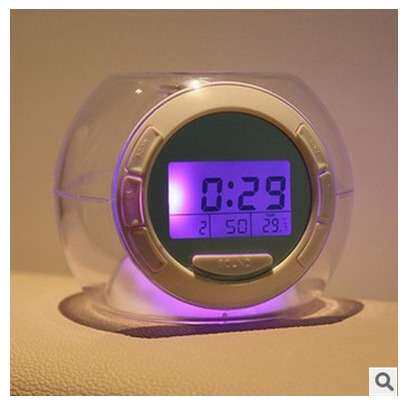 502七彩自然声闹钟 万年历变色电子钟 透明七彩时钟台钟